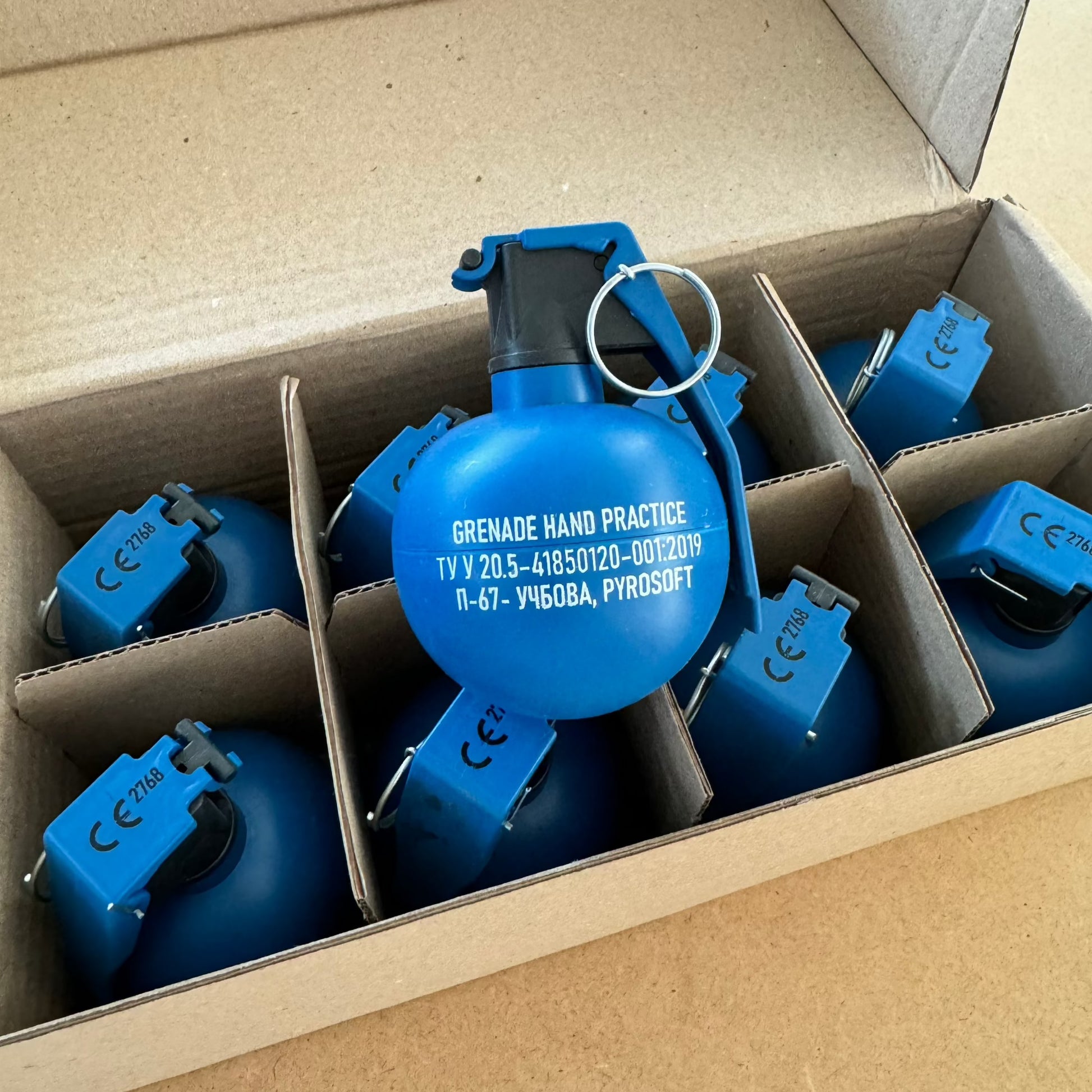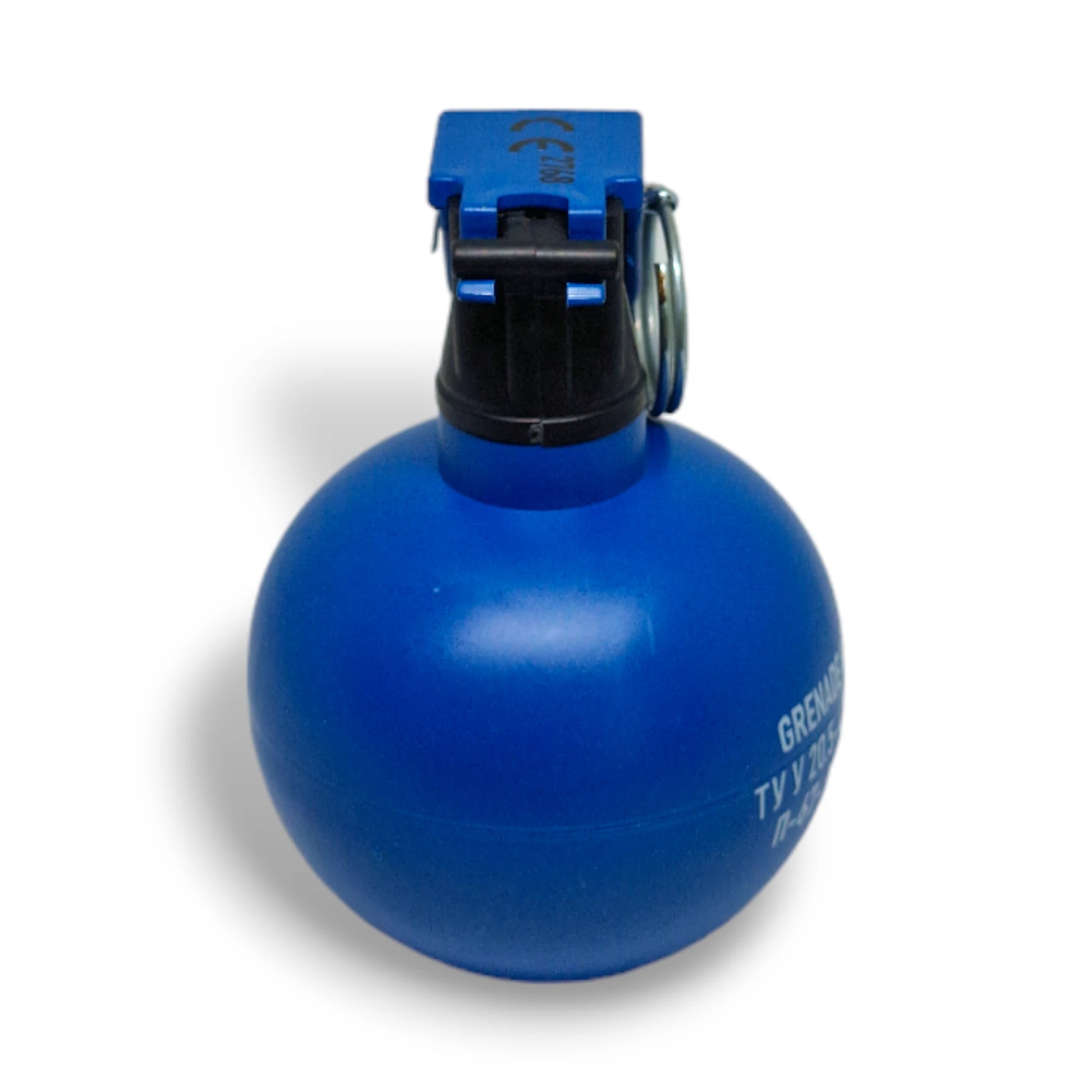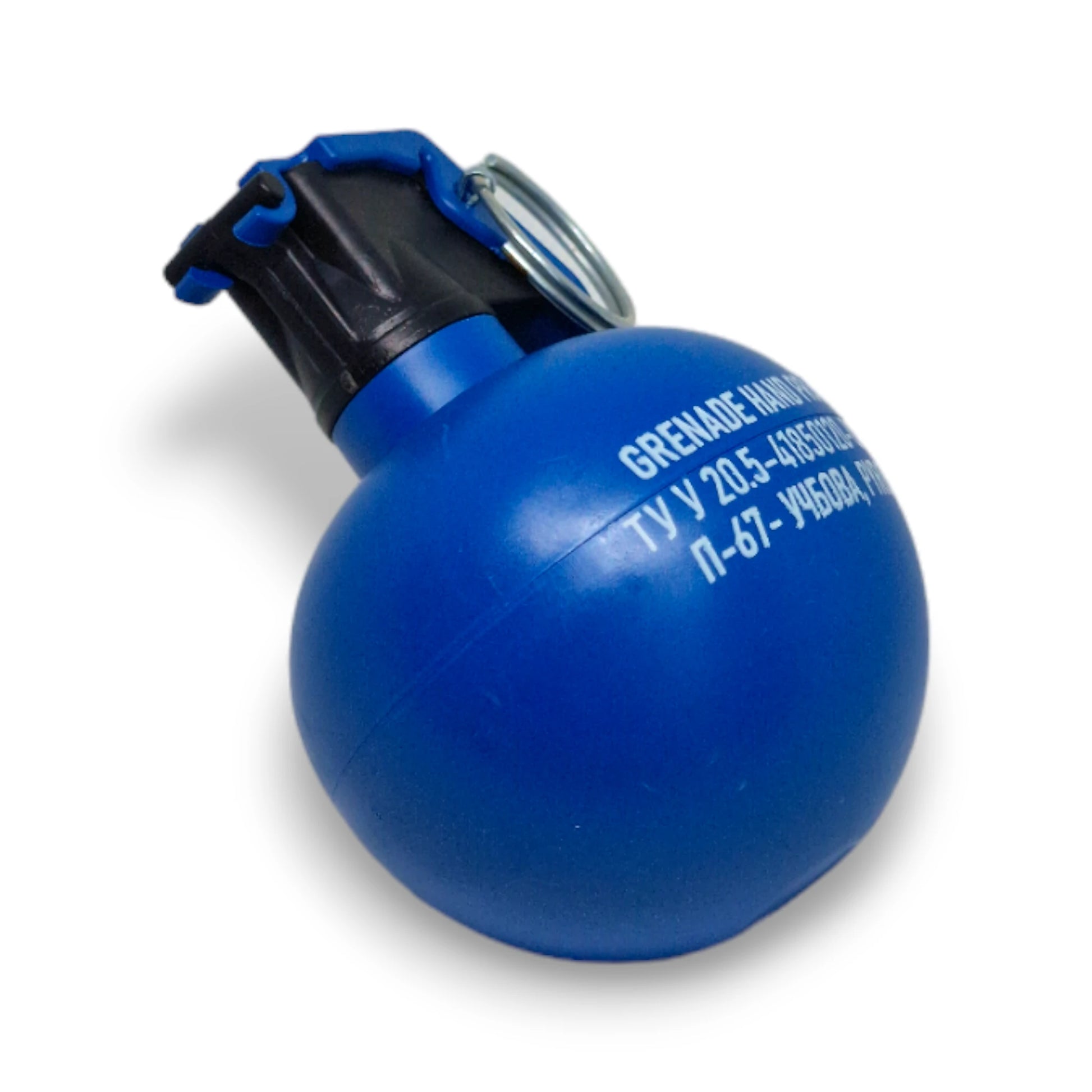 Hand Grenade P-67 Practice "NATO". Designed to meet the needs of military and security forces for training and practice exercises with the M67 grenade, which is in service with the United States and the NATO block. Educational and training grenade with pyrotechnic effect category P1. The weight is 400 grams and the dimensions correspond to the combat analogue, which makes it possible to practice the accuracy and range of throwing a grenade. Blue color of the product according to NATO standards for training grenades. It is used on specially designated landfills and sites outside public places.